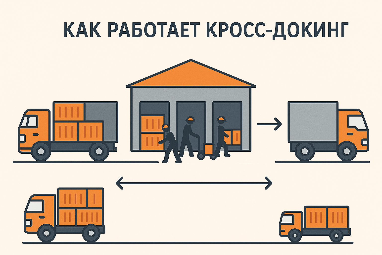 Представьте автовокзал. Автобус приезжает с одного направления, пассажиры пересаживаются в другой автобус и едут дальше. Никто не остаётся ночевать на вокзале. Примерно так работает кросс-докинг — груз перемещается с одного транспорта на другой через специальную платформу.